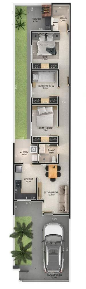 - Dormitórios: 3 Suítes: 1 Banheiros: 1 Garagens: 2